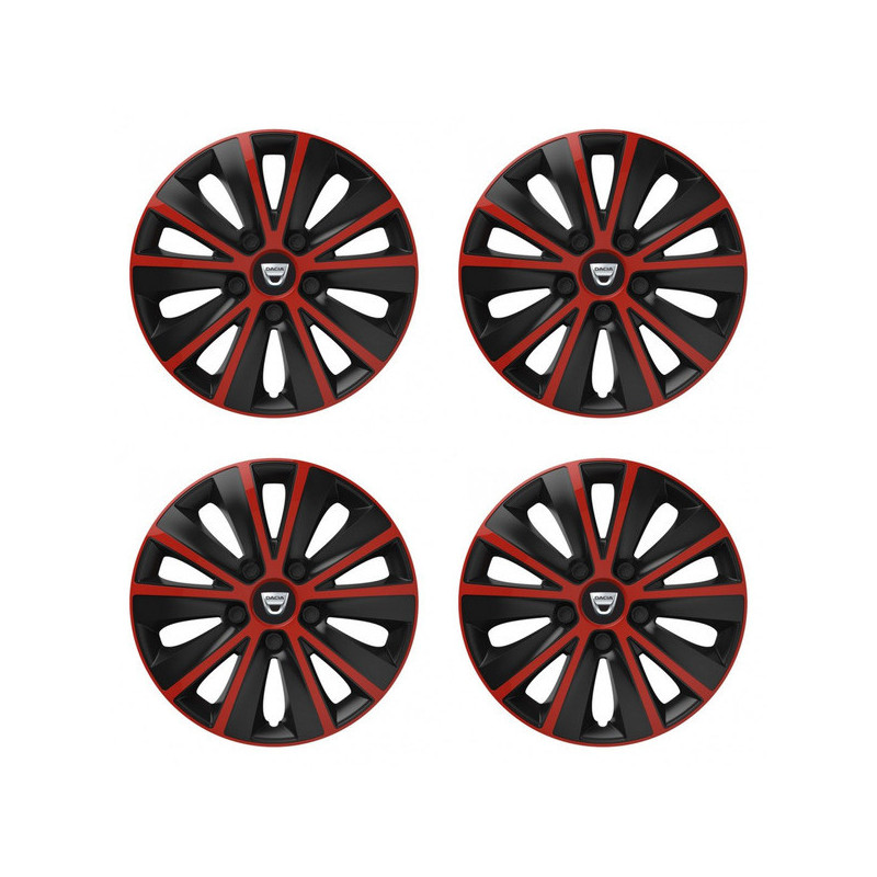 Puklice 15 RAPIDE red and black pre Dacia (staršie logo) na ocelové disky. Pre kolesá o veľkosti R15 so živicovými samolepkami Dacia (staršie logo).Príjemca :
