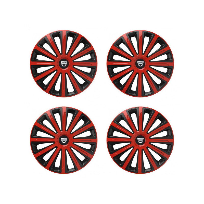 Puklice 16 TREND red and black pre Dacia (staršie logo) na ocelové disky. Pre kolesá o veľkosti R16 so živicovými samolepkami Dacia (staršie logo).Príjemca :