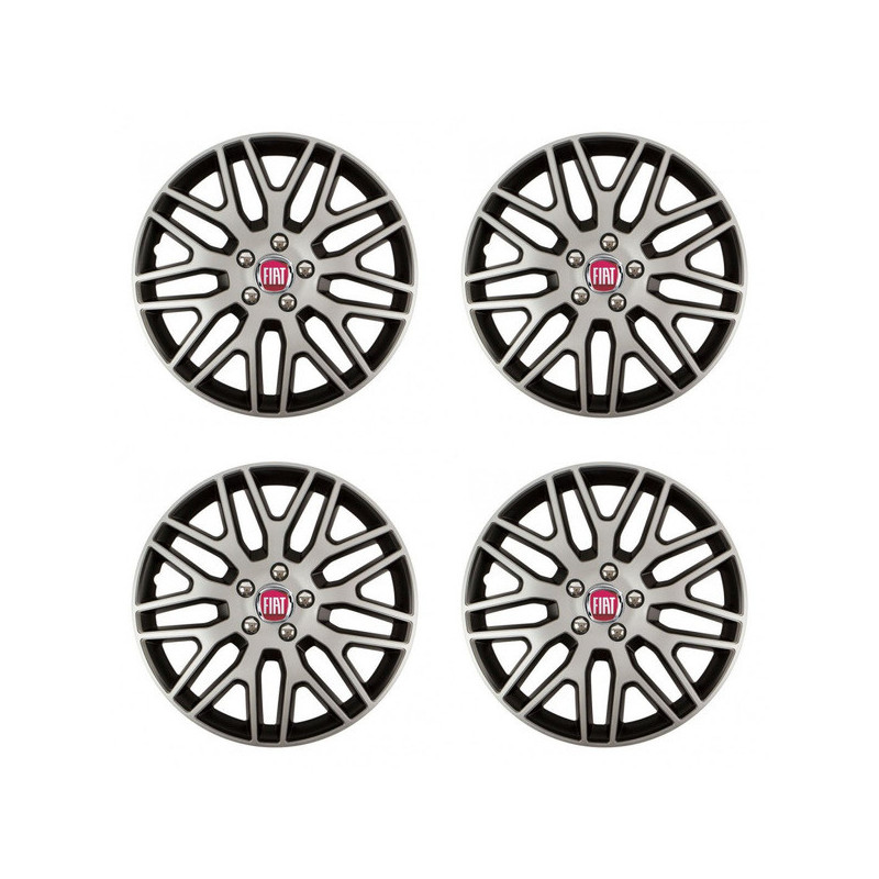 Puklice 14 Dakar NC silver and black pre Fiat (červené) na ocelové disky. Pre kolesá o veľkosti R14 so živicovými samolepkami Fiat (červené).Príjemca :