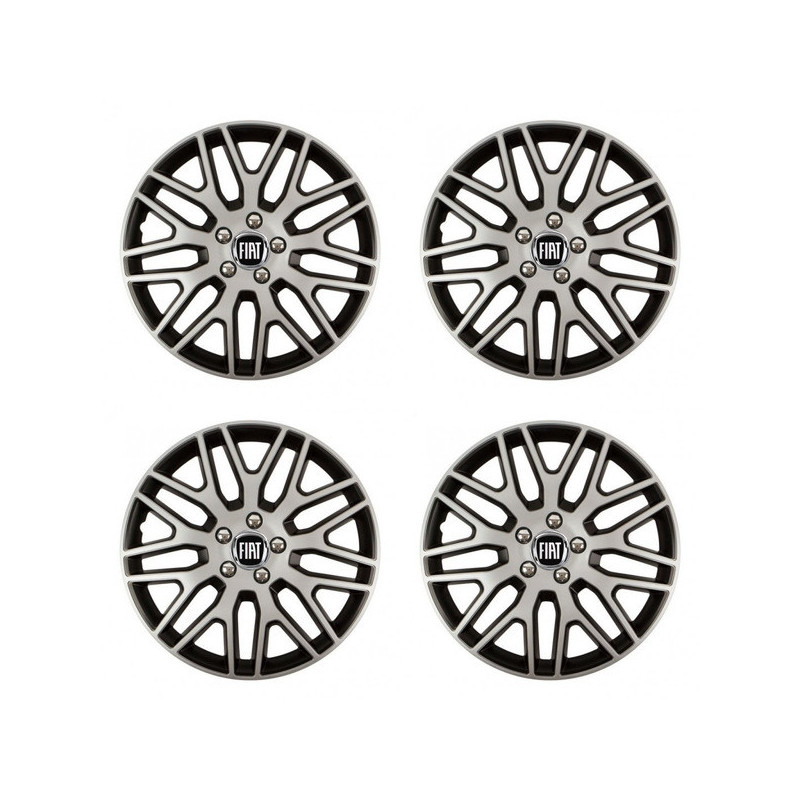 Puklice 14 Dakar NC silver and black pre Fiat (čierny) na ocelové disky. Pre kolesá o veľkosti R14 so živicovými samolepkami Fiat (čierny).Príjemca :