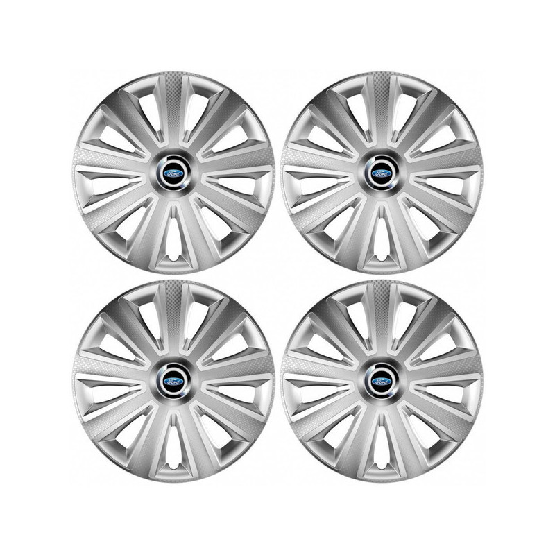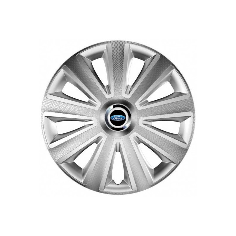 Puklice 14 Aviator carbon RC silver pre Ford na ocelové disky. Pre kolesá o veľkosti R14 so živicovými samolepkami Ford.Príjemca :