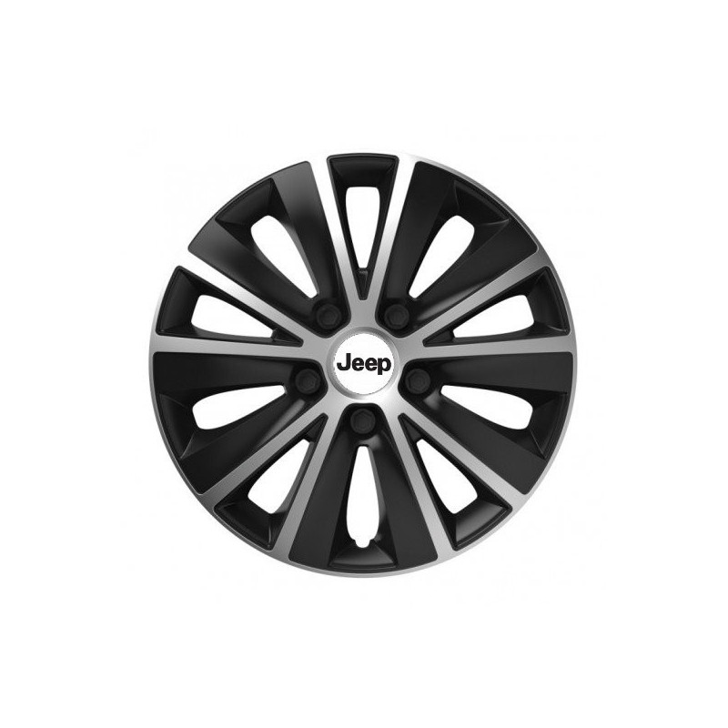 Puklice 14 RAPIDE silver and black pre Jeep na ocelové disky. Pre kolesá o veľkosti R14 so živicovými samolepkami Jeep.Príjemca :