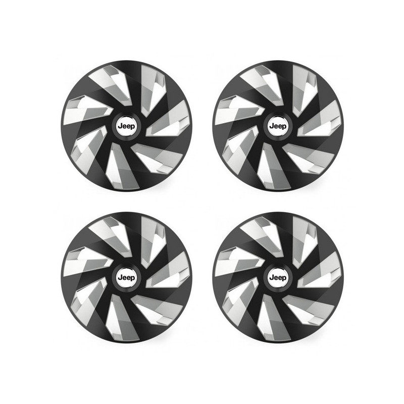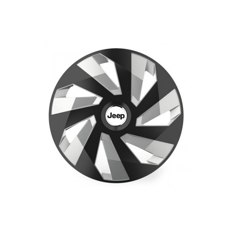 Puklice 14 Vector RC black and silver pre Jeep na ocelové disky. Pre kolesá o veľkosti R14 so živicovými samolepkami Jeep.Príjemca :