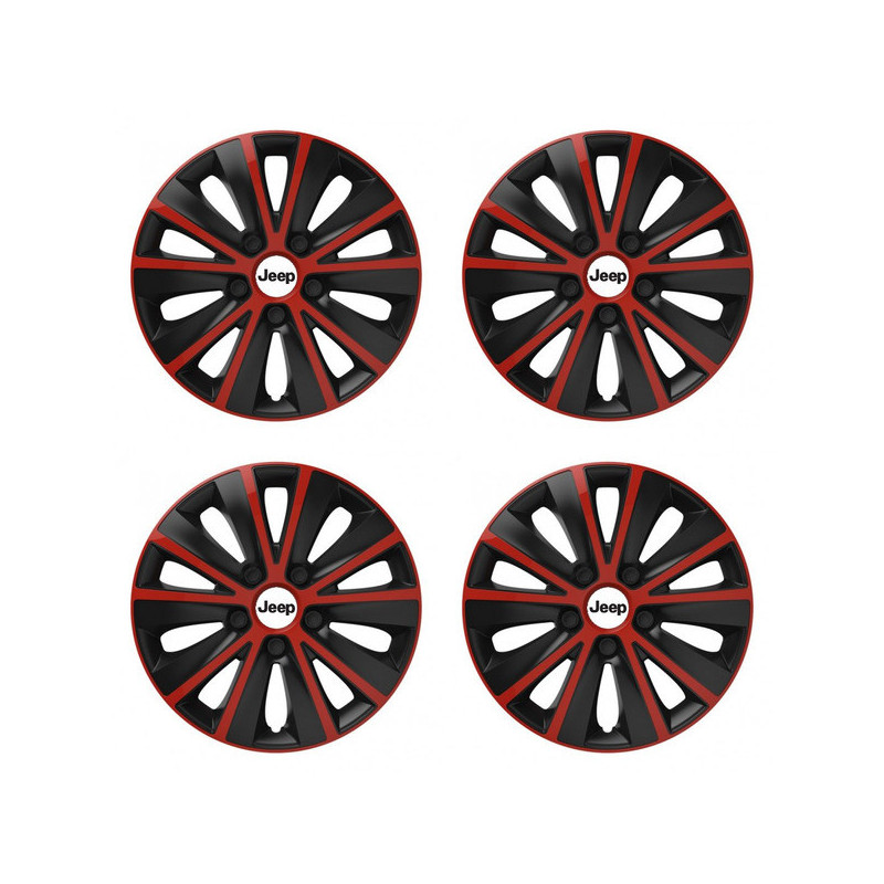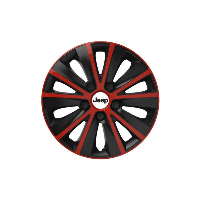 Puklice 16 RAPIDE red and black pre Jeep na ocelové disky. Pre kolesá o veľkosti R16 so živicovými samolepkami Jeep.Príjemca :