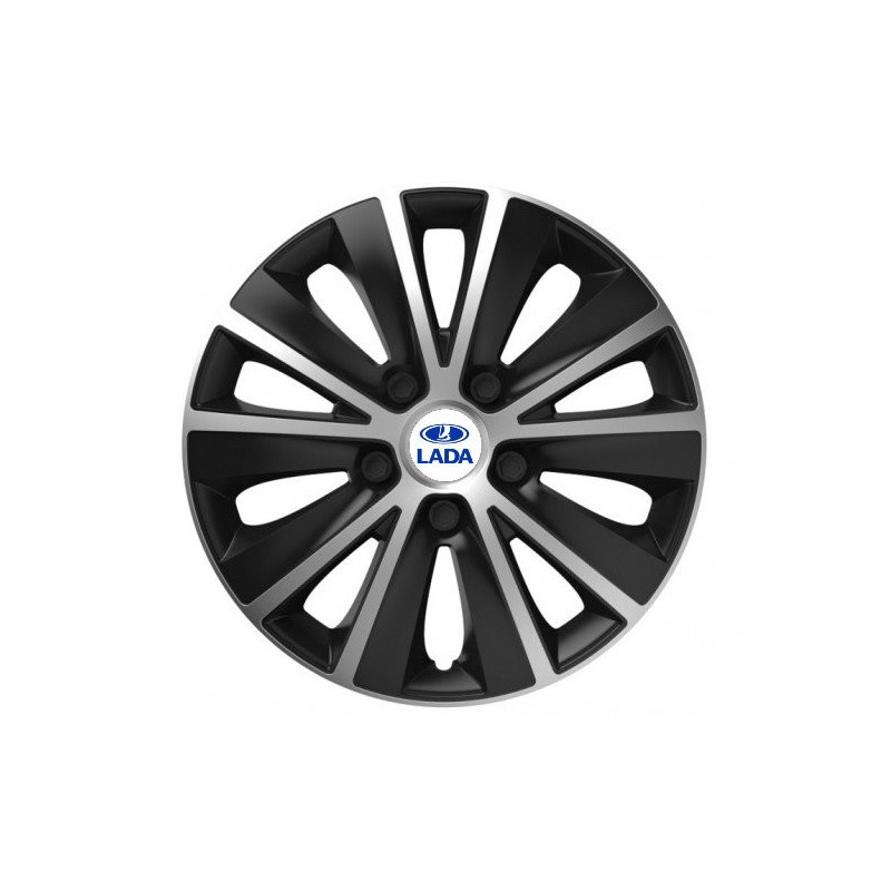 Puklice 14 RAPIDE silver and black pre Lada na ocelové disky. Pre kolesá o veľkosti R14 so živicovými samolepkami Lada.Príjemca :