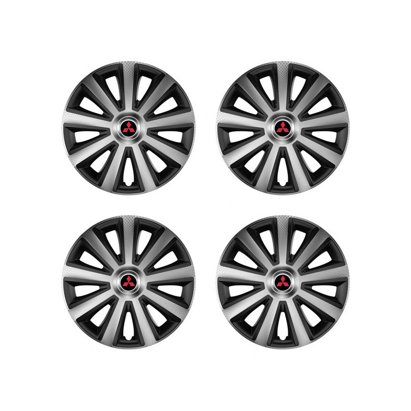 Puklice 14 Aviator carbon silver&black pre Mitsubishi (červené) na ocelové disky. Pre kolesá o veľkosti R14 so živicovými samolepkami Mitsubishi (červené).Príjemca :