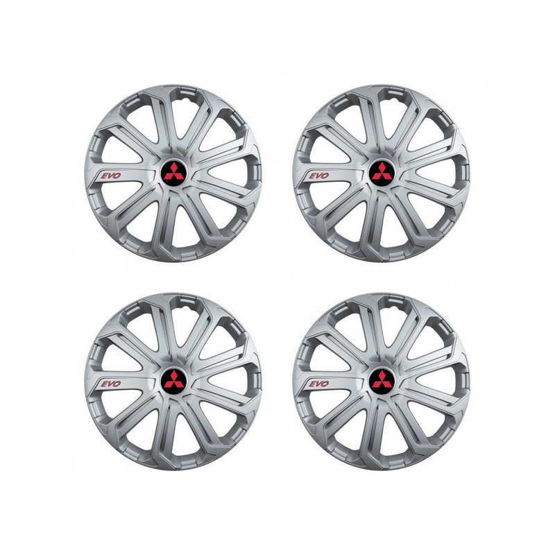 Puklice 16 Evo silver pre Mitsubishi (červené) na ocelové disky. Pre kolesá o veľkosti R16 so živicovými samolepkami Mitsubishi (červené).Príjemca :