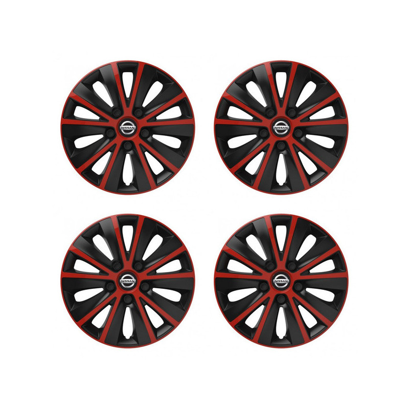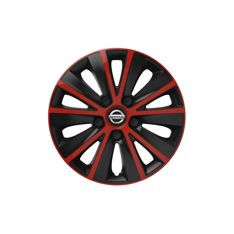 Puklice 16 RAPIDE red and black pre Nissan na ocelové disky. Pre kolesá o veľkosti R16 so živicovými samolepkami Nissan.Príjemca :