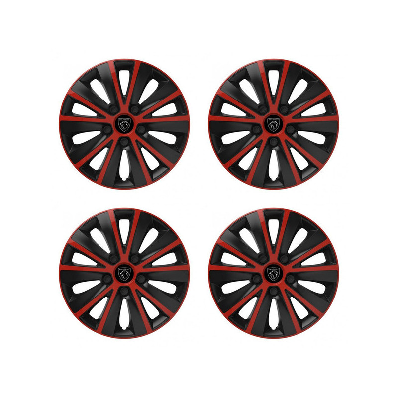 Puklice 14 RAPIDE red and black pre Peugeot (nové logo) na ocelové disky. Pre kolesá o veľkosti R14 so živicovými samolepkami Peugeot (nové logo).Príjemca :