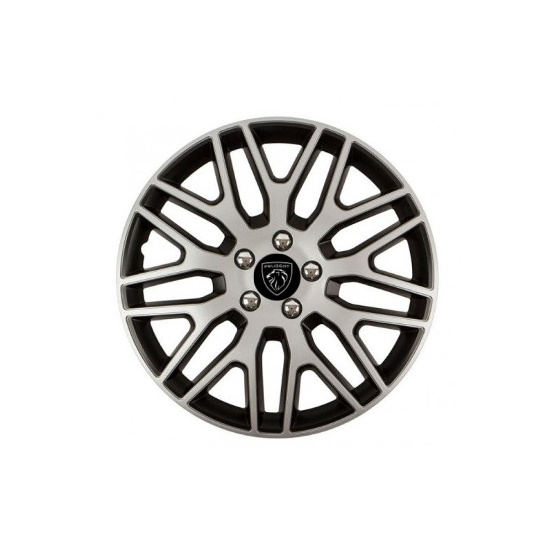 Puklice 16 Dakar NC silver and black pre Peugeot (nové logo) na ocelové disky. Pre kolesá o veľkosti R16 so živicovými samolepkami Peugeot (nové logo).Príjemca :