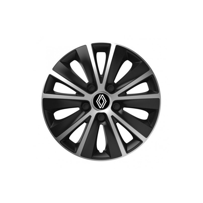 Puklice 14 RAPIDE silver and black pre Renault (nové logo) na ocelové disky. Pre kolesá o veľkosti R14 so živicovými samolepkami Renault (nové logo).Príjemca :