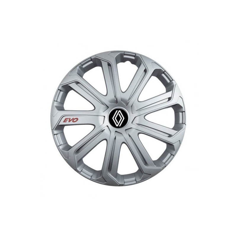 Puklice 15 Evo silver pre Renault (nové logo) na ocelové disky. Pre kolesá o veľkosti R15 so živicovými samolepkami Renault (nové logo).Príjemca :