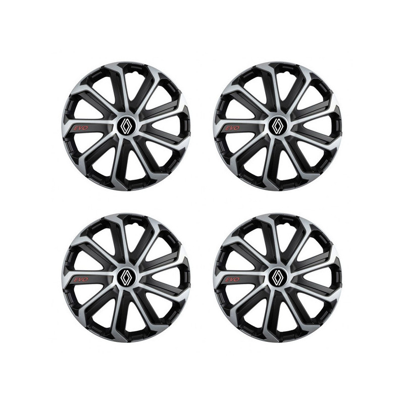 Puklice 16 Evo black&silver pre Renault (nové logo) na ocelové disky. Pre kolesá o veľkosti R16 so živicovými samolepkami Renault (nové logo).Príjemca :