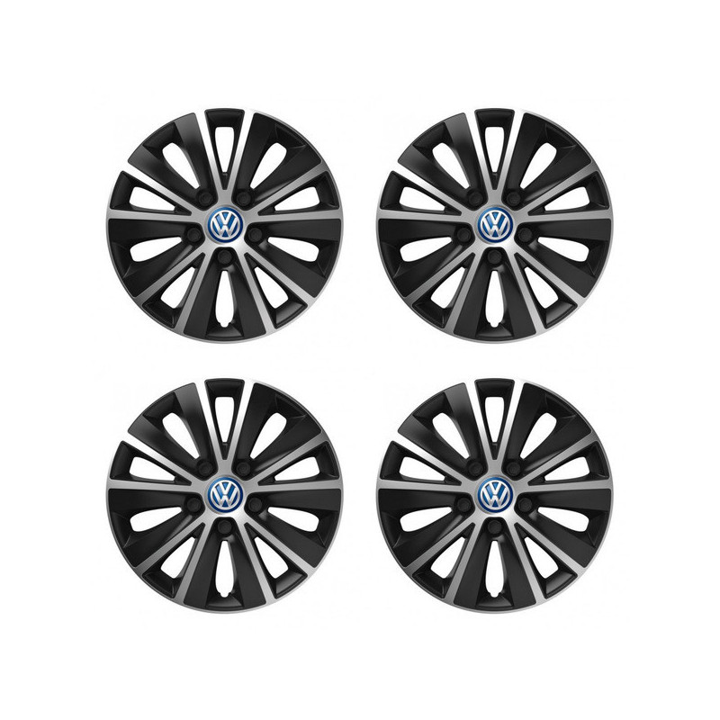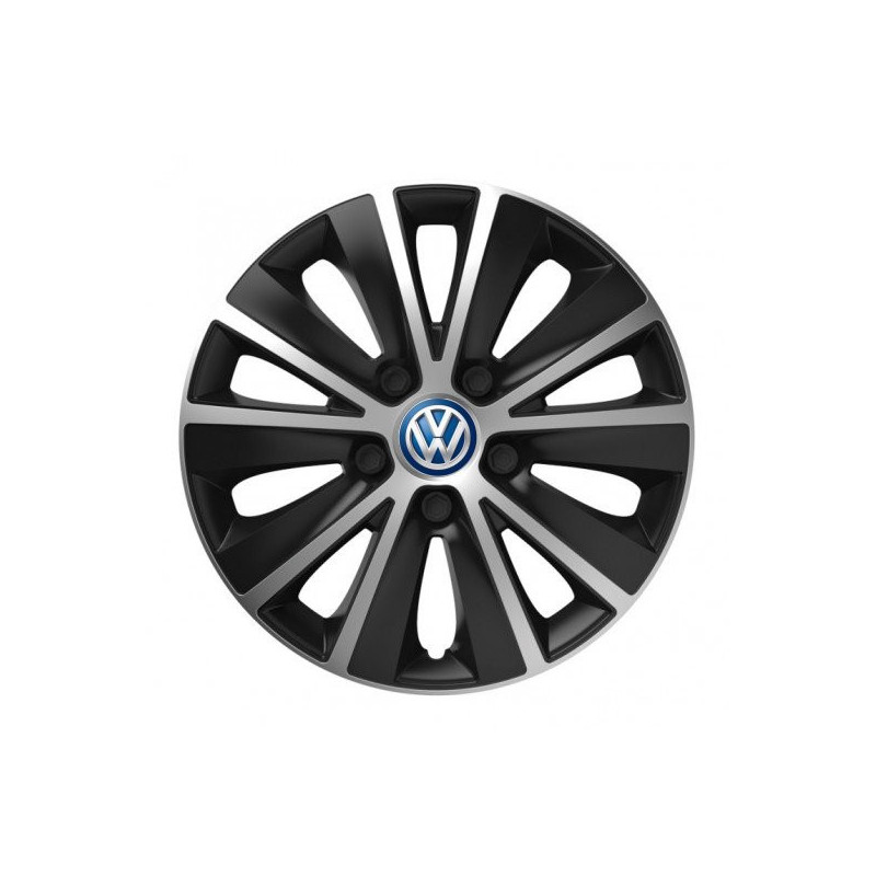 Puklice 14 RAPIDE silver and black pre VW (modré) na ocelové disky. Pre kolesá o veľkosti R14 so živicovými samolepkami VW (modré).Príjemca :
