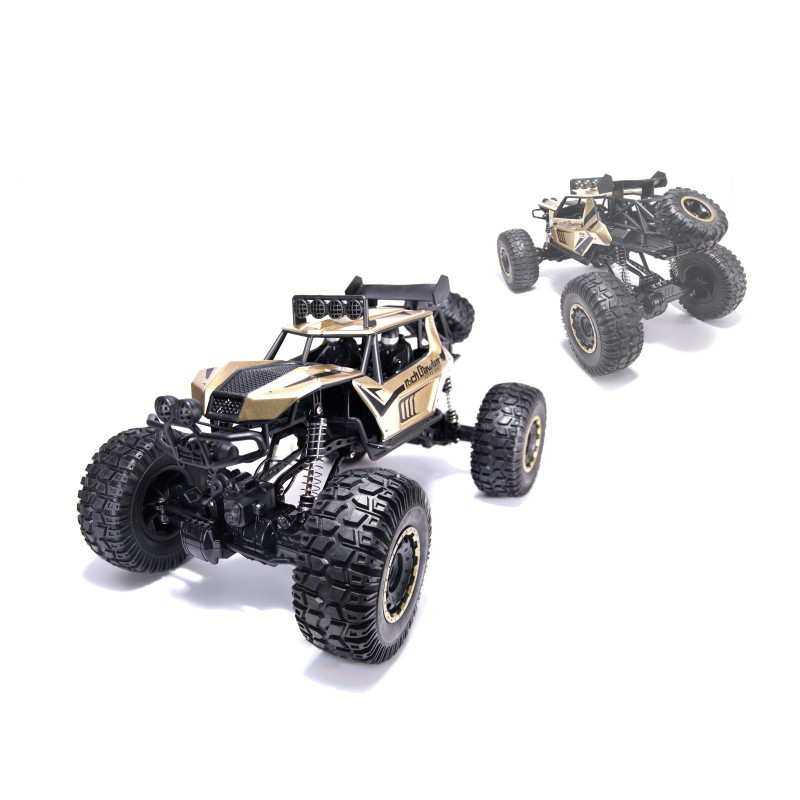 RC Rock Crawler v zlatej farbe je perfektný model pre začiatočníkov aj skúsených nadšencov. Svojimi rozmermi, výkonom a odolnosťou ponúka skvelý zážitok z jazdy v teréne.