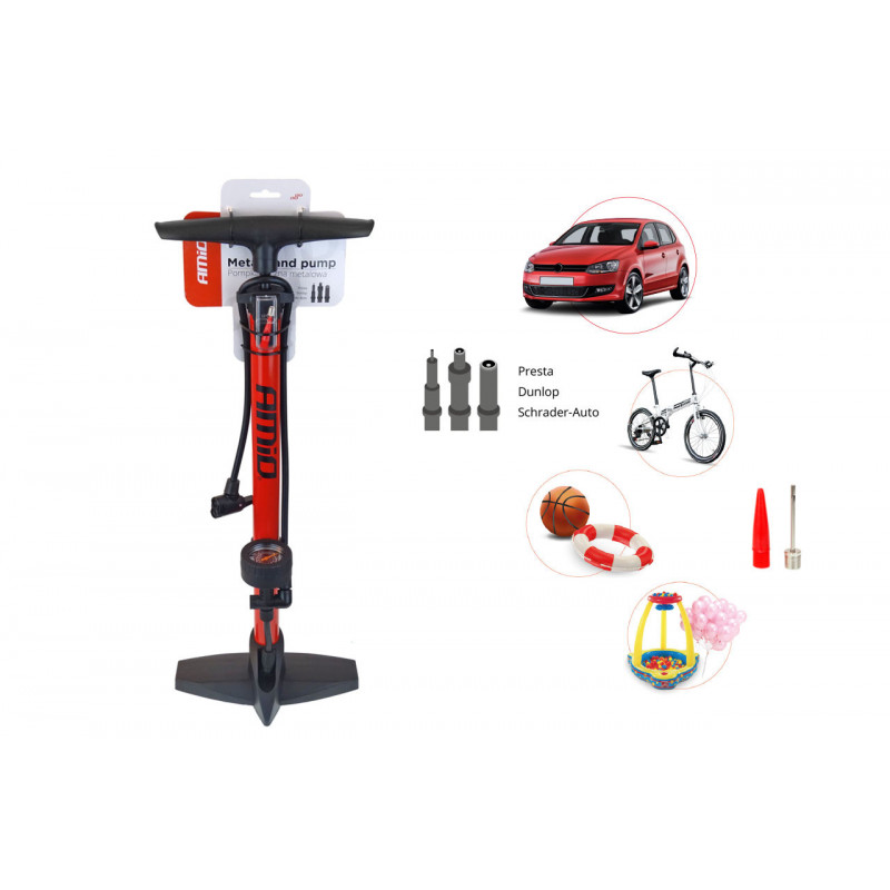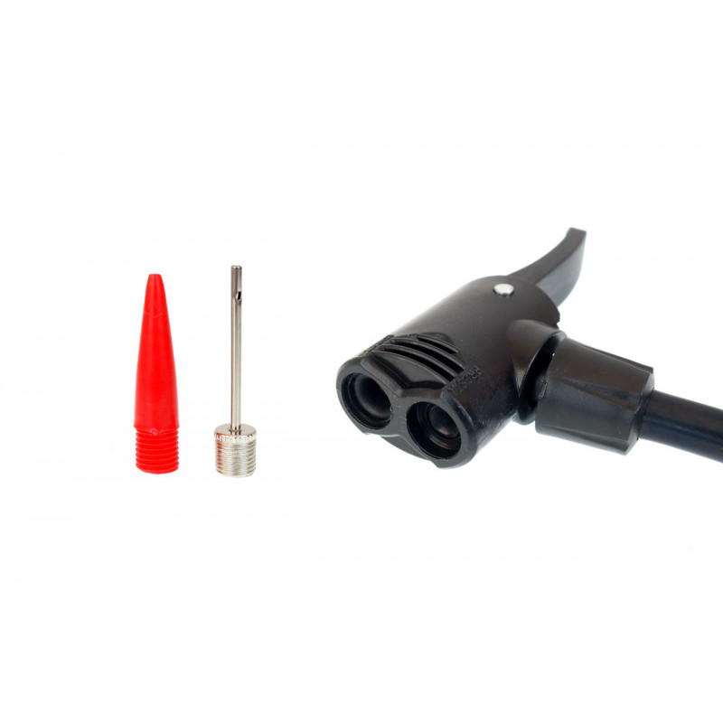 Robustná ručná hustilka s maximálnym tlakom 11 BAR / 160 PSI. Má dvojitú univerzálnu hlavu pre ventily automobilov a bicyklov. Okrem toho sú súčasťou súpravy adaptér a ihla na nafúknutie matracov, lôpt, nafukovacích hračiek atď.