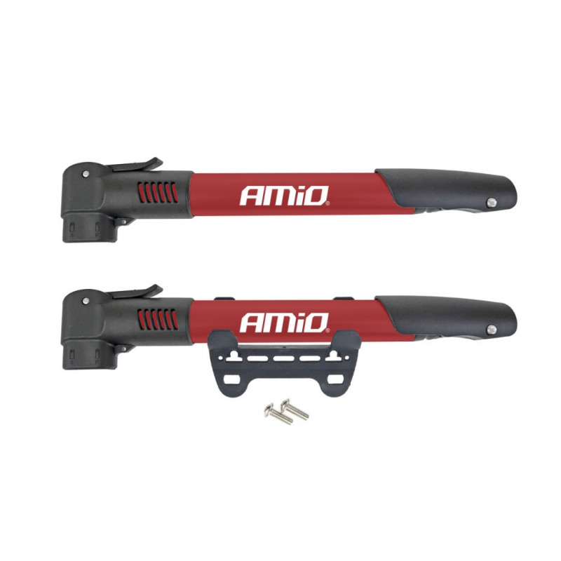 Pumpa na bicykel prispôsobené pre dva typy ventilov (jednoduché a štandardné auto). Zahŕňa konzolu pre montáž na rám bicykla pod fľašu s vodou.