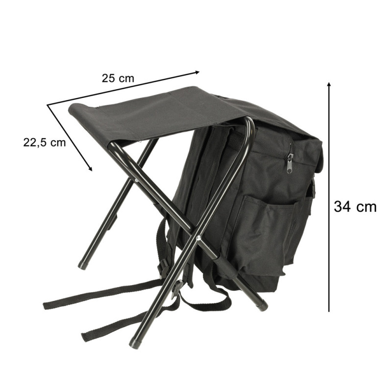 Turistická skladacia stolička s batohom, praktický pomocník- čierna.