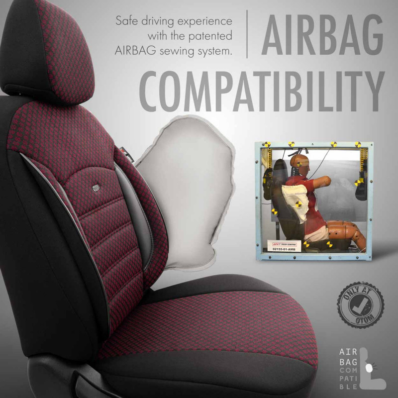 Štandardné poťahy majú certifikovaný šev AIRBAGový, vďaka čomu sú vhodné pre autá s bočnými airbagmi v sedadlách, ako aj pre štandardné sedadlá. Vďaka použitiu špeciálneho švu pokrývajú sedadlá úplne bez toho, aby narúšali prácu AIRBAGOV.