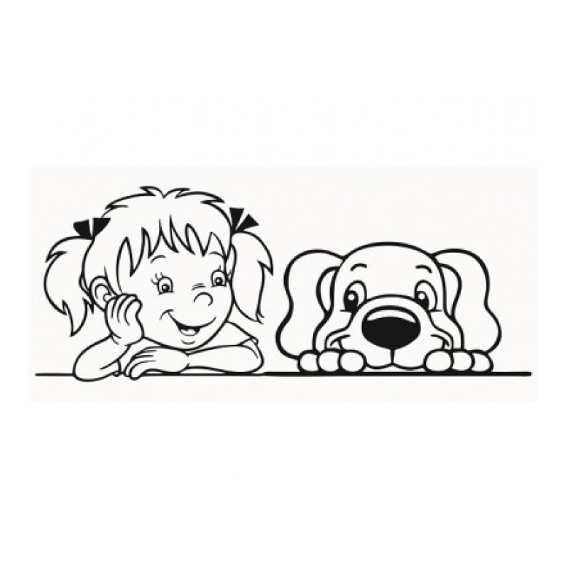 Samolepka Dievčatko + Pes za oknom
