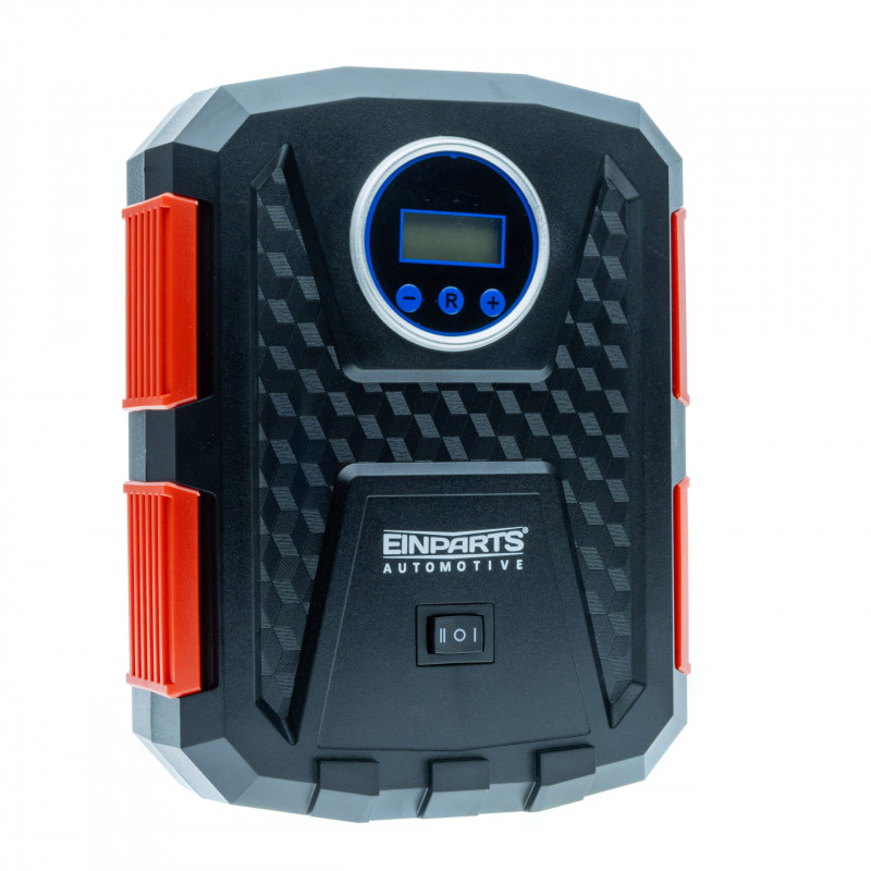 12V 10 Bar 150 PSI automobilový kompresor značky EINPARTS AUTOMOTIVE je spoľahlivý nástroj, ktorý zabezpečí rýchle napumpovanie automobilových pneumatík, bicyklov, športových míčov a mnohých ďalších predmetov. Napájaný zo zásuvky v aute. Ovládajte tlak pomocou elektronického manometra LCD a tlačidiel.