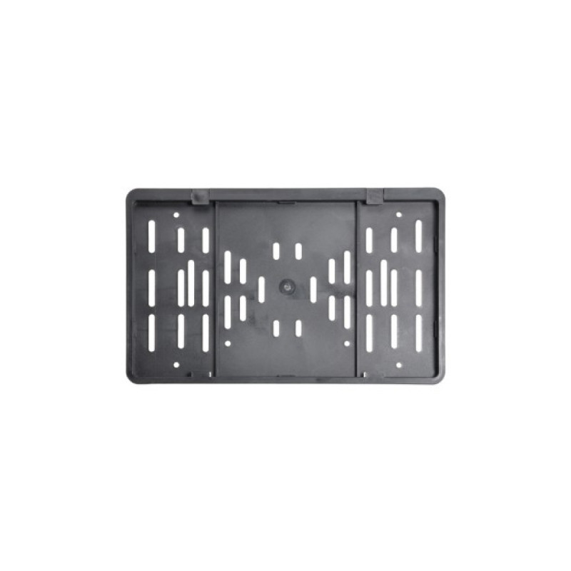 Podložka s pružného ohybného plastu pod štátnu poznávaciu značku alebo tabuľku registračnej značky, otvory pre univerzálnu montáž.