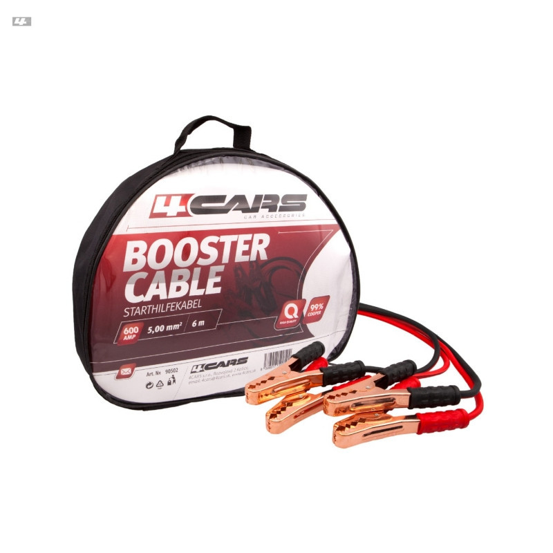 Max. prúd 600 ampér, dĺžka 6 metrov. 99% meď, 5.0mm². V uzatváratelnom obale. Neobsahuje žiadne prísady iných kovov, ktoré znižujú účinnosť štartovacích káblov.