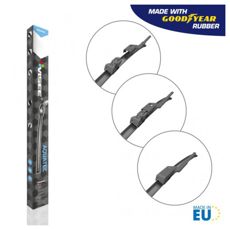 Stierače sú vyrobené z vulkanizovanej vysoko kvalitnej prírodnej gumy, obohatenej o aditíva, ktoré prispievajú k výnimočnej odolnosti voči UV žiareniu, striedaniu teplôt a tiež treniu. Vynikajúca trvanlivosť vďaka svojim nožom z kaučukových zmesí AQUATEC. Moderný dizajn stieračov prispieva k množstvu požadovaných vlastností ako napríklad nízka hlučnosť pri stieraní, vysoká aerodynamická efektívnosť pri vysokých rýchlostiach, stieranie po celej dĺžke stierača resp. okna.