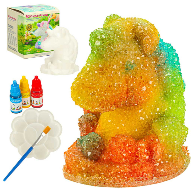 Objav kúzlo vedy a kreativity v jednom balení! Táto jedinečná súprava je určená pre všetky zvedavé deti, ktoré túžia po vlastných pokusoch a tvorbe. Umožňuje vypestovať nádherné kryštály priamo na sadrovom jednorožcovi.