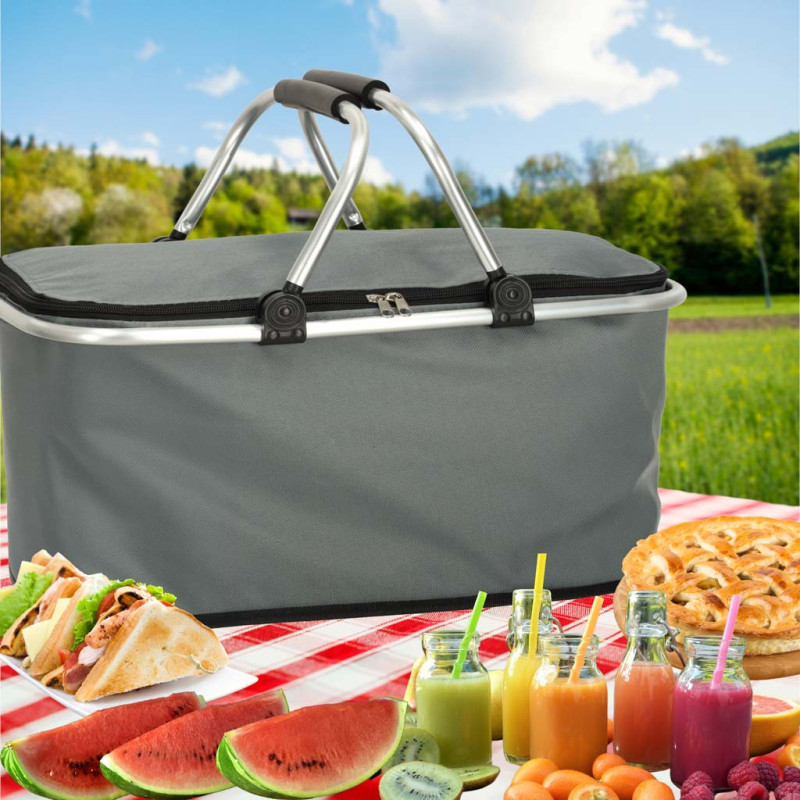 SKLADACÍ TERMICKÝ PIKNIKOVÝ KÔŠ S HLINÍKOVOU KONŠTRUKCIOU – SIVÝ, 32 L