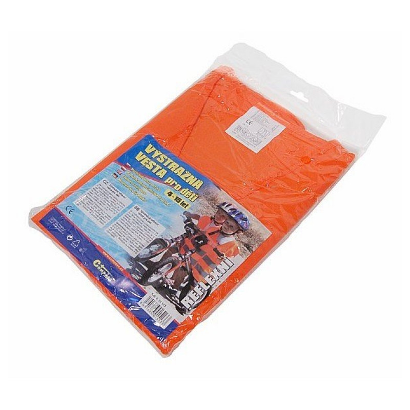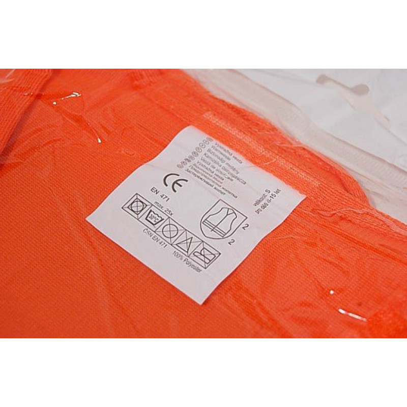 Dva reflexné pruhy po celom obvode, zapínanie na suchý zips. Zodpovedá norme STN EN 471. Veľkosť S, určené pre deti vo veku 4 - 15 rokov, farba oranžová.