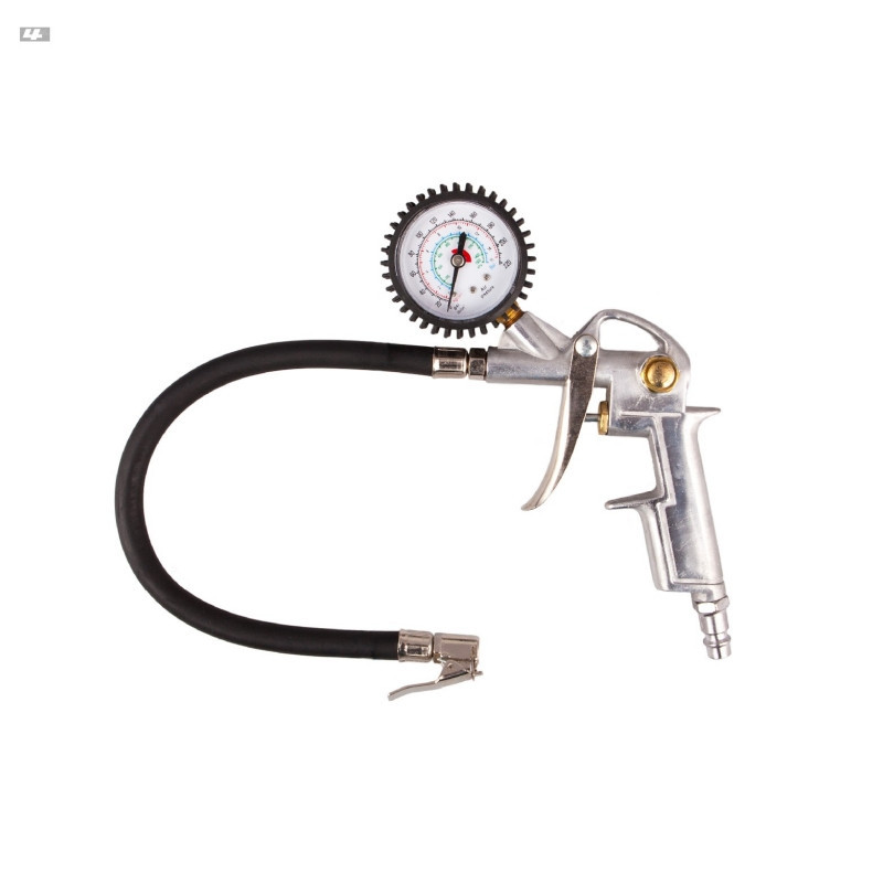Vzduchová pištoľ pre dofukovanie pneumatík s analogovým meračom tlaku v pneumatikách. Šúčasťou balenia je adaptér pre upevnenie na ventílček pneumatiky. Dofukovanie je riadené ručnou spúšťou, po ukončení dofukovania merač zobrazí reálny tlak v pneumatike. Výpustným ventílom na rukoväti je možné tlak v kolese znížiť.