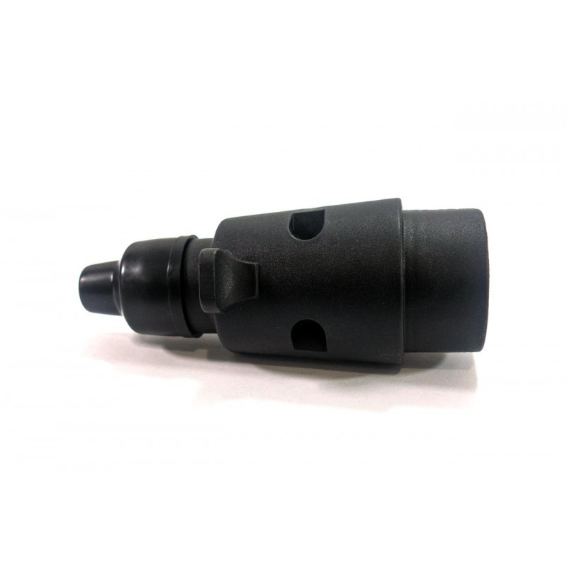 Zástrčka na prívesný vozík z pevného plastu so 7 pólovým pripojením a 12V napätím.